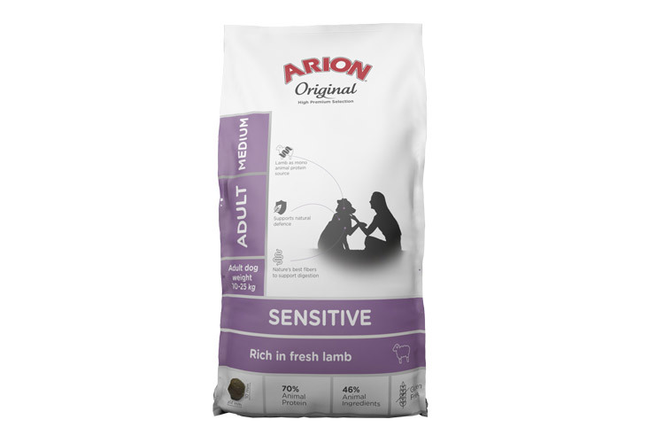 Arion Original Sensitive Medium es un alimento completo para perros adultos. Esta receta a base de cordero y sin gluten, contiene una combinación sinérgica de las mejores fibras naturales y prebióticos para favorecer la digestión.